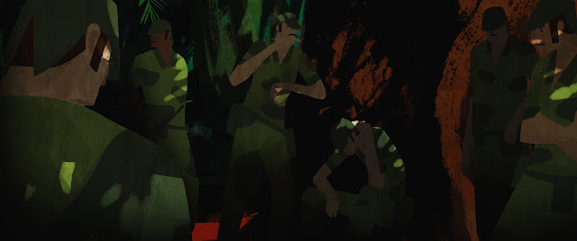 The soldiers' graphic research was aimed at creating a coherent graphic line with the main characters, that would still allow silhouette reading. Small heads that relate with powerful and agile bodys.